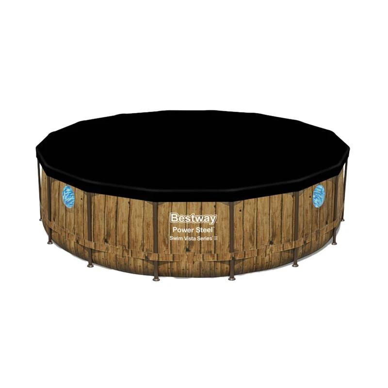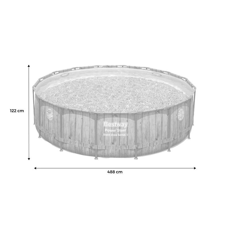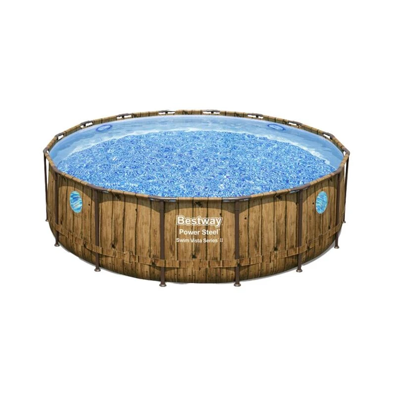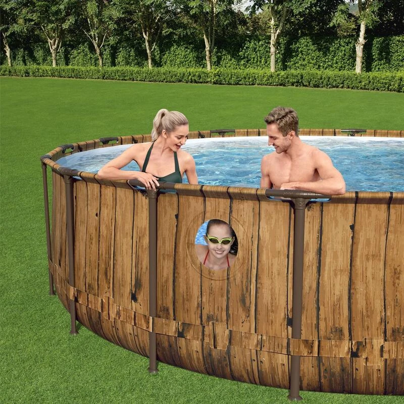 Piscine tubulaire BESTWAY- Aigue- hors sol. hublots intégrés. 4.8mx1.22m avec pompe de filtration et diffuseur ChemConnect. couleur bois veiné