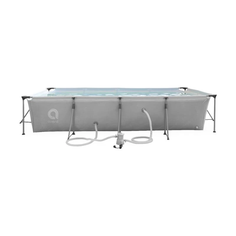 Piscine hors sol tubulaire. rectangulaire grise 4×2 avec pompe de filtration et armature en acier