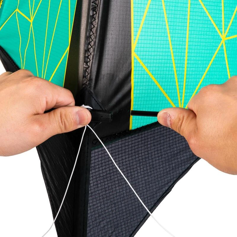 Pour limiter au maximum la casse lors de chutes ce cerf-volant a été conçu pour se déformer/déconnecter et ainsi agir comme un fusible au moment du contact avec le sol.