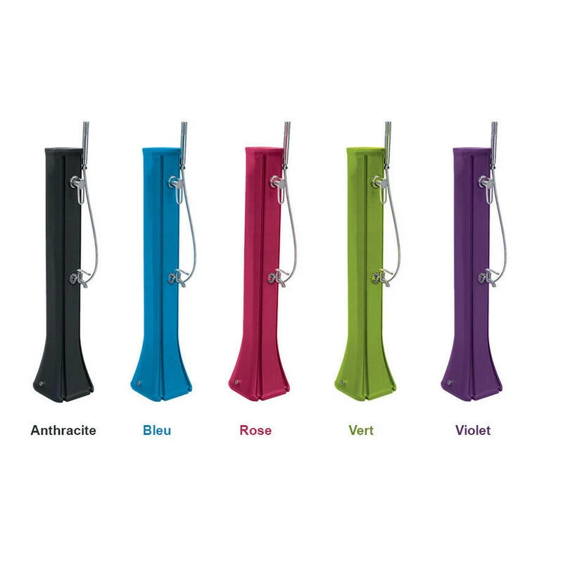 Happy Go: Douche Solaire Compacte, 23L, PEHD Recyclable, Design Sophistiqué, Utilise l’énergie solaire, Installation Facile, Rince-pieds Inclus. Prêt pour la détente au soleil!