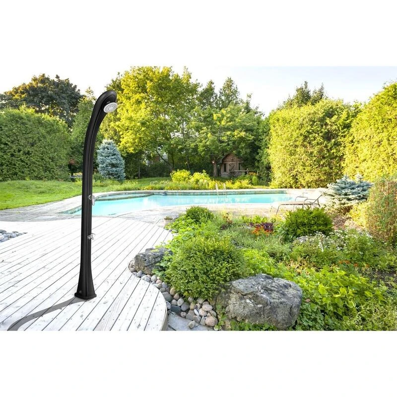 Douche Solaire So Happy 28L : Nouveau Design. Structure en PEHD recyclable, utilise l’énergie Solaire, Rince-pieds Inclus, Facile à Installer, Finitions et détails soignés.