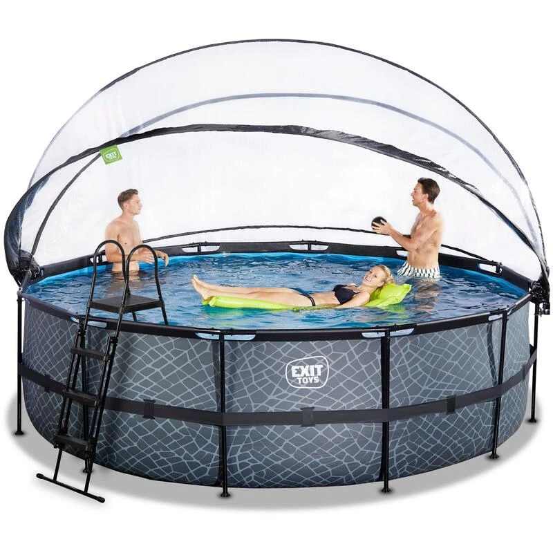Les piscines sont équipées d’une pompe filtrante à cartouche ou à sable et elles sont disponibles en différentes dimensions et hauteurs.