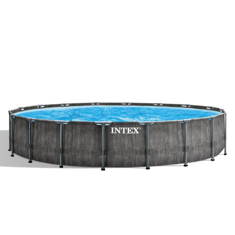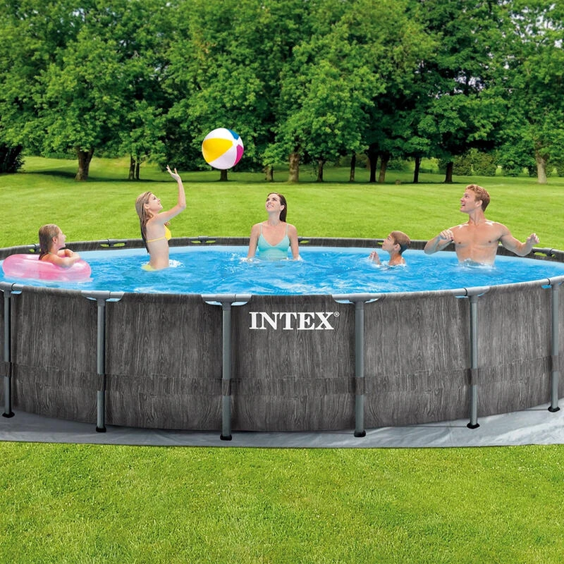 Piscine tubulaire Baltik ronde 5,49 x 1,22 m – Intex. Liner en PVC armé triple épaisseur avec effet bois inspiré des tendances scandinaves.Accessoires inclus : • Un filtre épurateur à cartouche 4,4 m