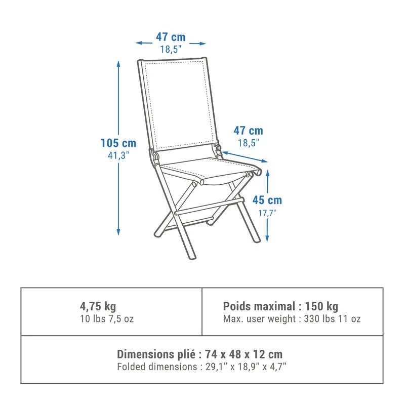 Nos concepteurs campeurs ont conçu cette chaise comfort double position. Pliante et confortable pour s’asseoir à table, se détendre ou se reposer en camping.Notre motivation ? Vous proposer une chaise très confortable, une assise et un dossier aérés avec 2 positions pour: manger, se détendre ou se reposer.