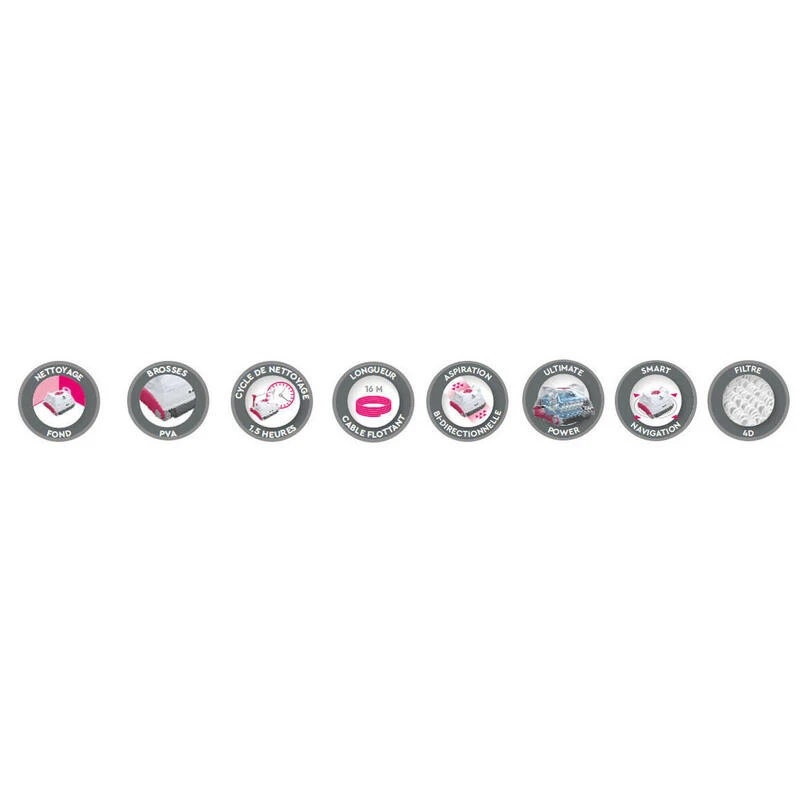 Robot électrique de piscine : aspire toutes les saletés de la piscine sur le fond. Le robot D100 s?adapte à toutes les surfaces et à toutes les formes de piscines jusqu?à 8m de long. Puissance…